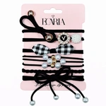 ECARLA zestaw gumek do włosów 6SZT czarne KOKARDKI z perełkami GUM181