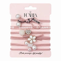 ECARLA zestaw gumek do włosów 6szt HAPPY, różowe kokardki GUM180