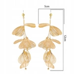 ECARLA kolczyki wiszące efektowne liście, kwiaty Złote K1678