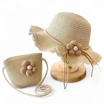 ECARLA kapelusik i torebka słomkowa, dziecięca Beżowy Kwiatek CZ55