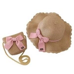 ECARLA kapelusik i torebka słomkowa, dziecięca Kokarda beżowa 52cm CZ42