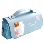 ECARLA piórnik-torebka wielofunkcyjny dwukomorowy z Kotkiem Niebieski PR14N