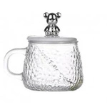 ECARLA szklanka z uchem i pokrywką młotkowana do kawy Miś KB05 270ml