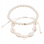 ECARLA bransoletka na stopę MUSZELKI na sznurku, PEREŁKI B544 2szt