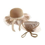 ECARLA kapelusik i torebka słomkowa, dziecięca Kokarda beżowa 52cm CZ42