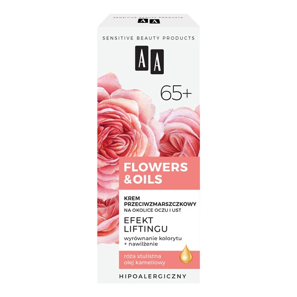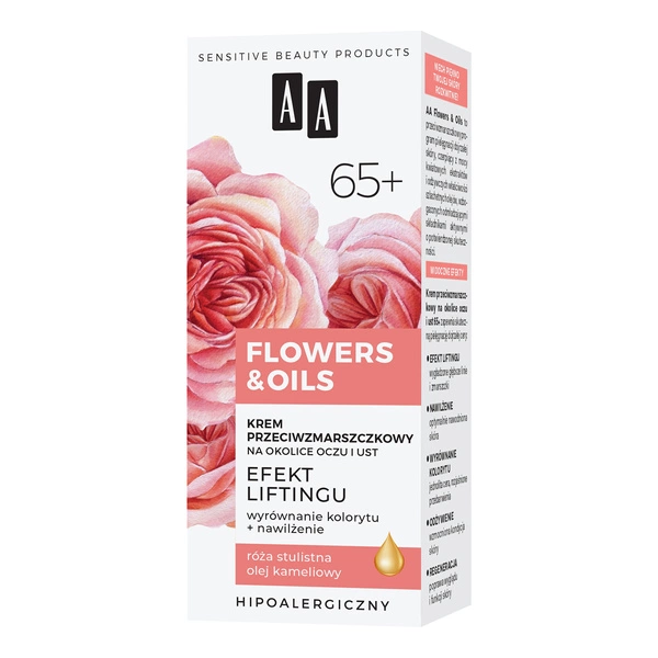 AA Flowers & Oils 65+ Przeciwzmarszczkowy krem liftingujący pod oczy i na okolice ust 15ml
