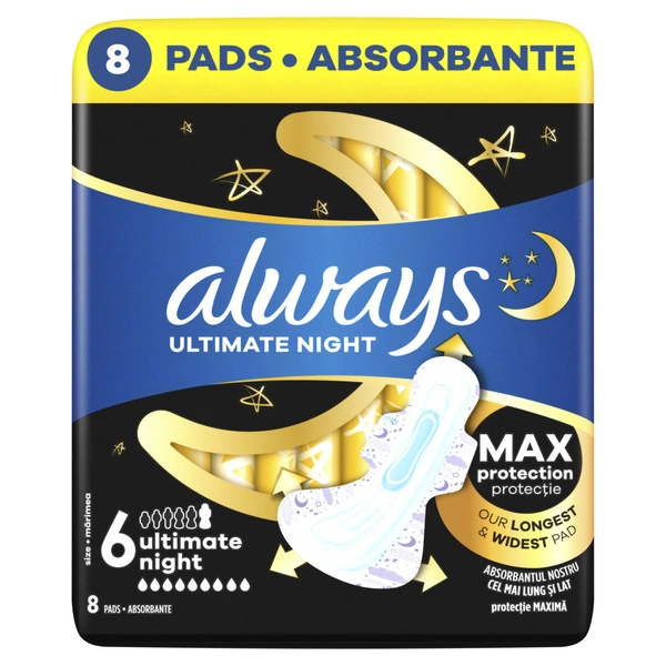 - Podpaski Ultra Ultimate Night to innowacyjne rozwiązanie stworzone z myślą o zapewnieniu maksymalnej ochrony podczas snu. Zaprojektowane, aby sprostać nawet najbardziej wymagającym potrzebom związanym z menstruacją, gwarantując spokojny i komfortowy sen.