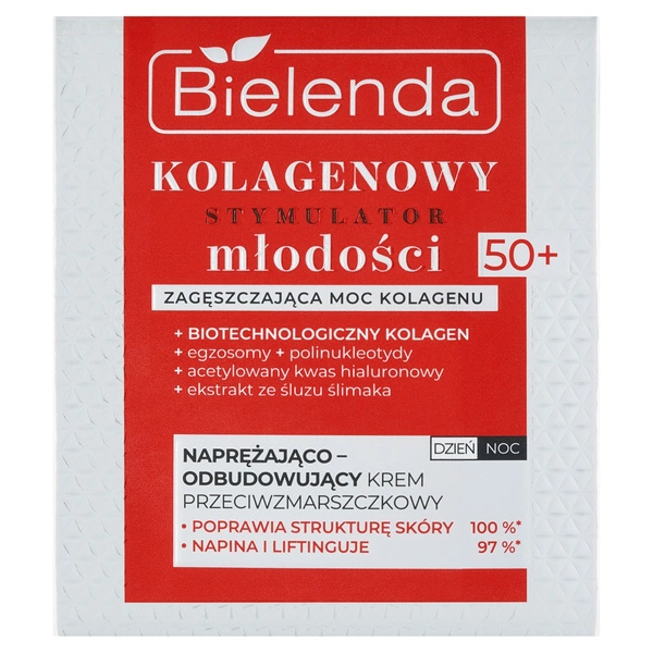 Bielenda Kolagenowy Stymulator Młodości 50+ to napinająco-odbudowujący krem przeciwzmarszczkowy, który poprawia strukturę cery, zapewniając efekt liftingu i ujędrnienia.