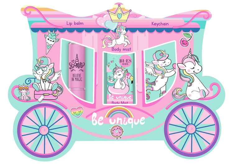 BIES Be Unique Carriage zestaw (balsam do ust + mgiełka do ciała 100 ml z efektem rozświetlającym + brelok) Kareta