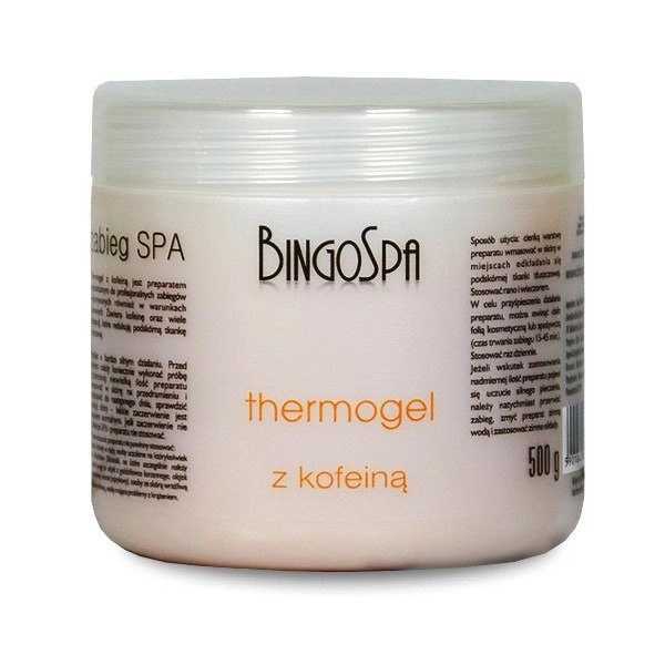 BingoSpa thermogel z Kofeiną to produkt do profesjonalnych zabiegów, które można wykonać również w domu. Zawiera kofeinę, a także wiele innych substancji redukujących komórki tłuszczowe pod warstwą skóry. Głównym celem kofeiny jest zapobieganie procesowi tworzenia się komórek tłuszczowych w komórkach skóry oraz redukcja już powstałych komórek tłuszczowych. Ułatwia usuwanie z organizmu toksyn i produktów przemiany materii.