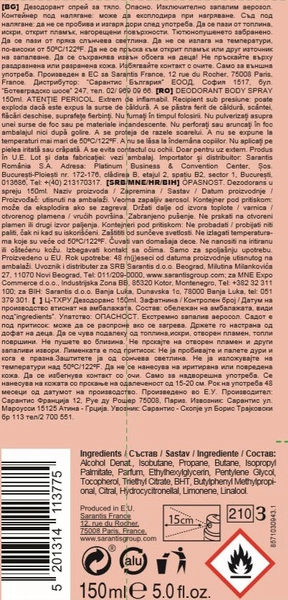 • Dezodorant zapachowy w sprayu dla kobiet, który oferuje harmonijną kompozycję owocowych, kwiatowych i drzewnych nut.