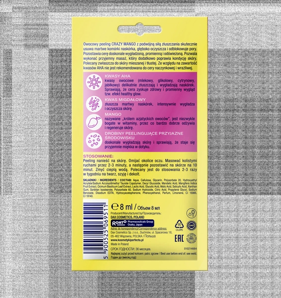 DAX Perfecta peeling do twarzy oczyszczający z kwasami AHA Crazy Mango 8ml