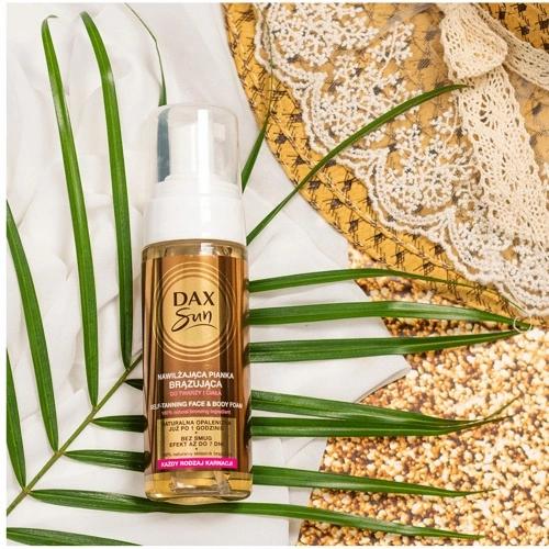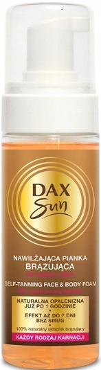 Nawilżająca pianka brązująca DAX Sun do twarzy i ciała, odpowiednia dla każdego typu karnacji.