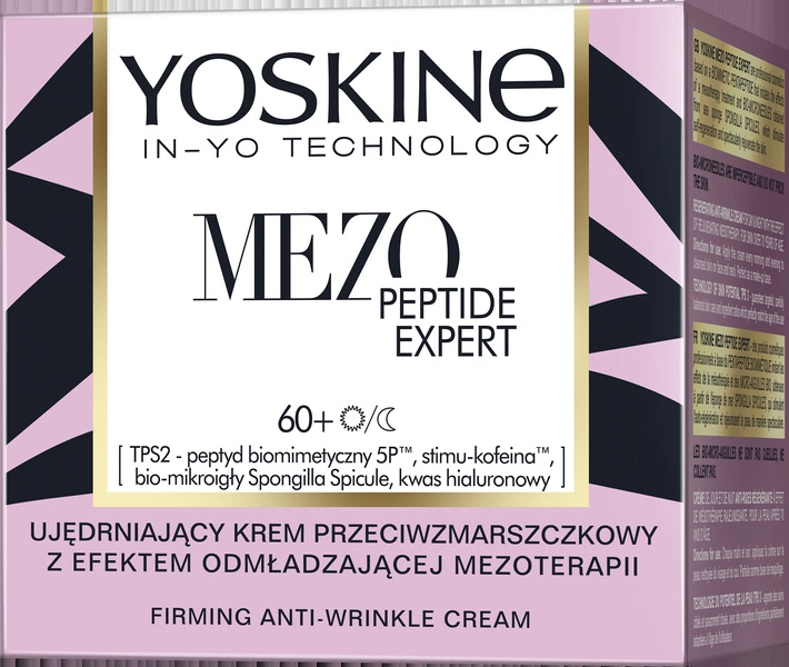 YOSKINE MEZO PEPTIDE EXPERT to nowoczesna linia kosmetyków, której formuła bazuje na BIOMIMETYCZNYM PENTAPEPTYDZIE, imitującym działanie mezoterapii, oraz na naturalnych BIO-MIKROIGŁACH pochodzących z gąbki morskiej SPONGILLA SPICULES. Te mikroigiełki stymulują skórę do głębokiej, naturalnej odnowy, zapewniając widoczny efekt odmłodzenia. Produkty wykorzystują innowacyjną technologię IN-YO.