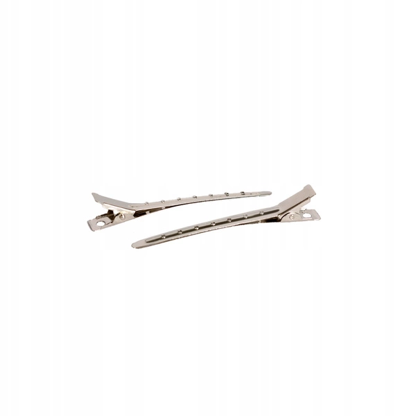 Metalowe spinki to niezastąpiona pomoc przy rozdzielaniu pasm włosów podczas różnorodnych zabiegów fryzjerskich i codziennej stylizacji. Bardzo dobrze przytrzymują włosy, nie powodując ich odkształceń, co pozwala na precyzyjne ułożenie fryzury. Są przy tym w pełni bezpieczne dla struktury włosa.