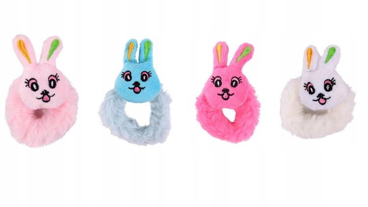 Pluszowa gumka do włosów z motywem króliczka, dostępna w różnych kolorach.