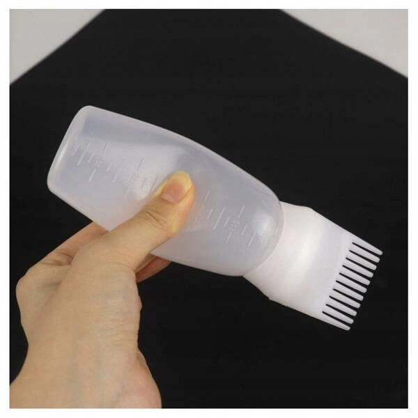 - Grzebień, aplikator butelka, szczotka z podziałką do wcierek, farb i maseczek do włosów. Wykonana z wytrzymałych materiałów, doskonale masuje skórę głowy, bez powodowania podrażnień. Precyzyjny aplikator wcierek i maseczek do włosów. Wymiary 17x 4,5cm.
