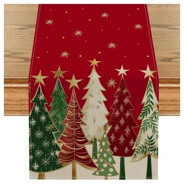 ECARLA Boże Narodzenie bieżnik na stół świąteczny 180x33cm Choinki BZK05
