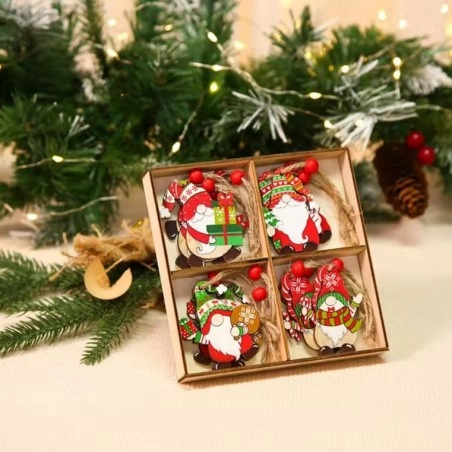 ECARLA Boże Narodzenie zawieszki choinkowe drewniane 12szt KRASNALE BSN77