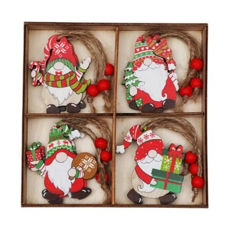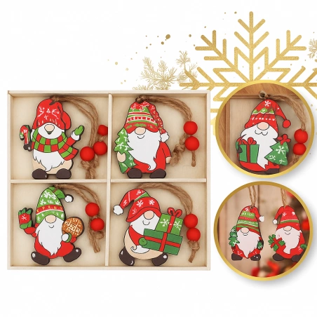 Zestaw drewnianych zawieszek choinkowych ECARLA — KRASNALE BSN77
