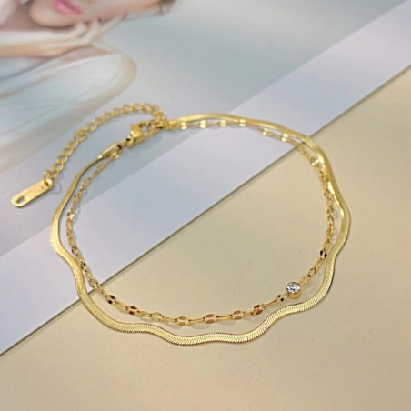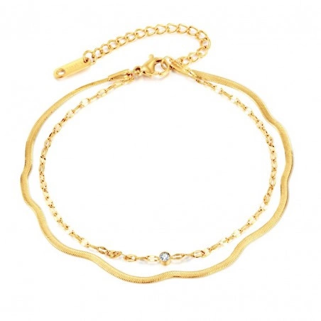 ECARLA bransoletka na rękę podwójna ze stali chirurgicznej pozłacanej BST1513