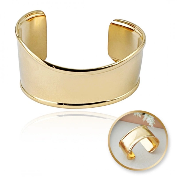 - Modna bransoletka ze stali nierdzewnej platerowana 14 karatowym złotem. Świetnie pasuje do eleganckich, jak również do codziennych stylizacji. Elegancki dodatek na każdą okazję, do sukienek, spódnic, spodenek. Wymiary: 3,9cm x 5cm