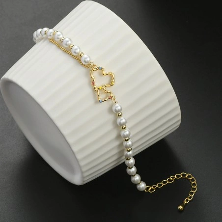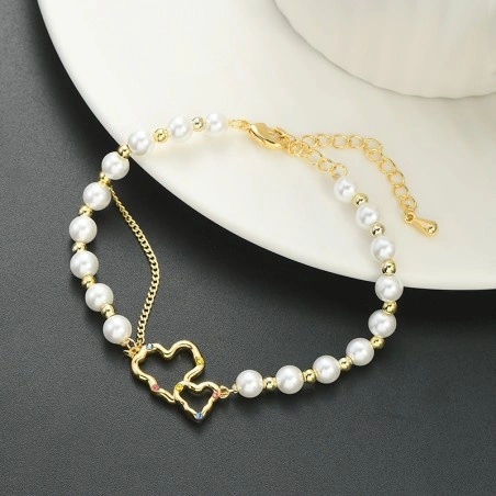 ECARLA bransoletka na rękę ze stali chirurgicznej pozłacanej PEREŁKI SERCA BST1531