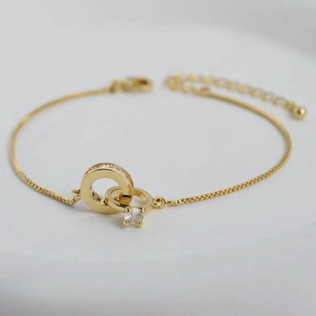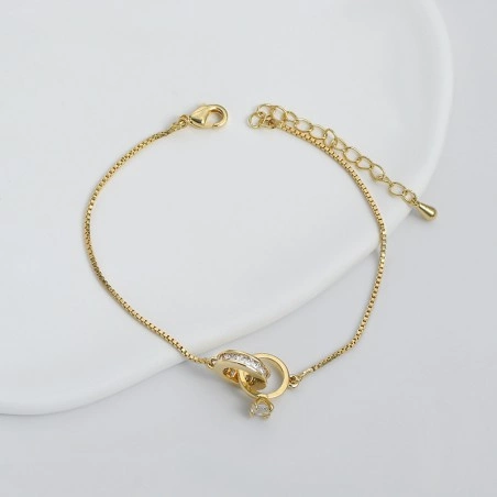 - Modna bransoletka ze stali nierdzewnej platerowana 14 karatowym złotem. Świetnie pasuje do eleganckich, jak również do codziennych stylizacji. Elegancki dodatek na każdą okazję, do sukienek, spódnic, spodenek. Długość 17cm + 4cm regulacji.