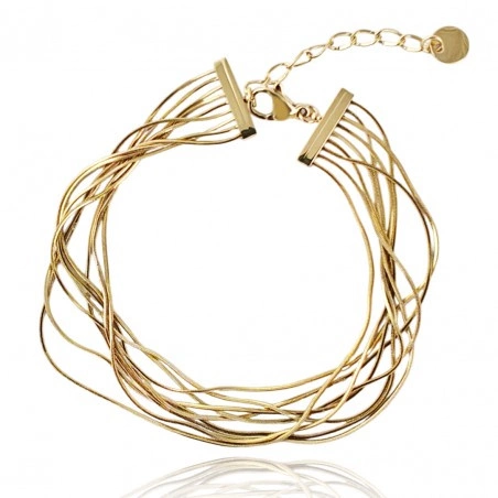 - Modna bransoletka ze stali nierdzewnej platerowana 14 karatowym złotem. Świetnie pasuje do eleganckich, jak również do codziennych stylizacji. Elegancki dodatek na każdą okazję, do sukienek, spódnic, spodenek. Długość: 15cm + 3cm regulacji.