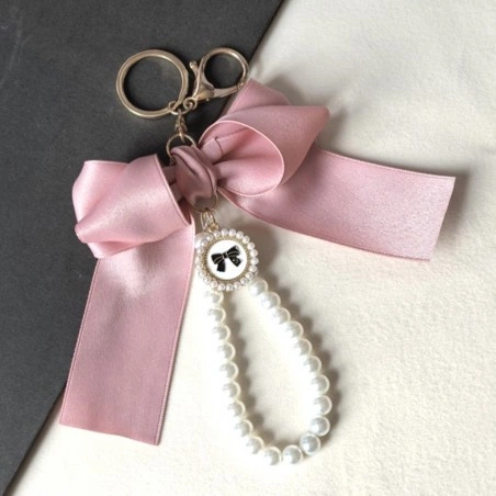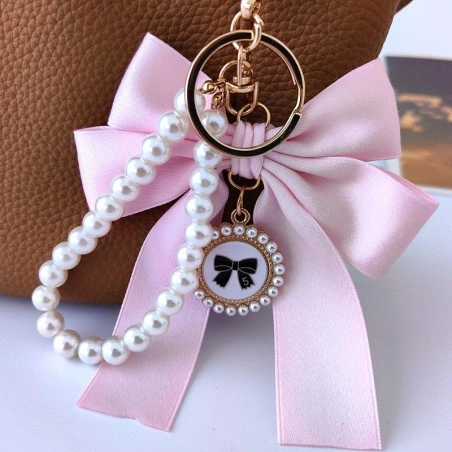 ECARLA brelok do kluczy KOKARDA z perłami Różowa BRL362R