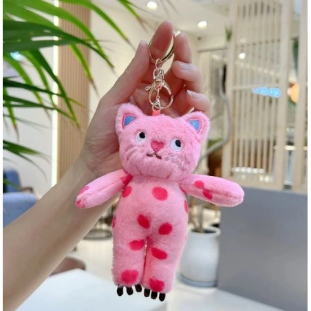 ECARLA brelok do kluczy KOT pluszowy Kotek Różowy w ciapki BRL396R
