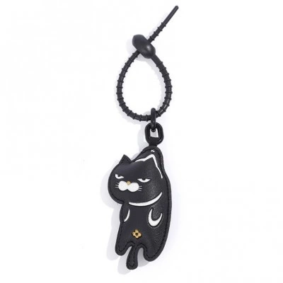 ECARLA brelok do kluczy KOT skórzany Czarny BRL363