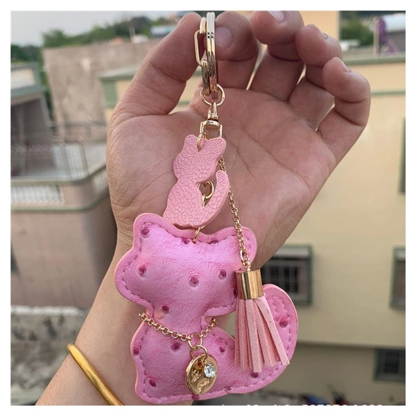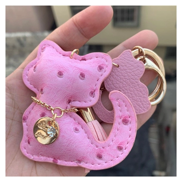 ECARLA brelok do kluczy KOT skórzany Różowy Kotek BRL358