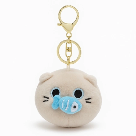- Brelok do kluczy z przywieszką, pluszowy wibrujący Kot łapiący rybę. Idealny jako ozdoba do kluczy lub torebki. Szerokość: 11cm. Wysokość: 8cm. Długość smyczy: 8cm. Długość całkowita: 16cm.