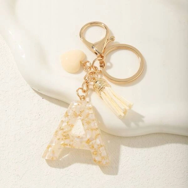 ECARLA brelok do kluczy LITERKA A biały motylek serca BRL329A