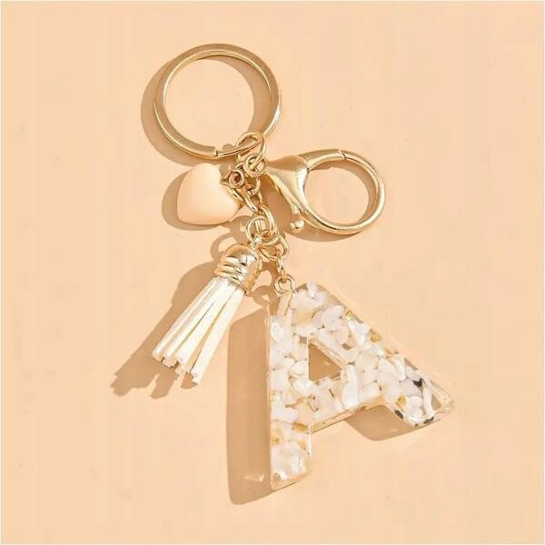 • Długość literki: 3,8cm Szerokość literki: 2,7cm Wymiary motylka: 3,8cm x 2,5cm Długość przywieszki z frędzelkami: 3,5cm Długość karabińczyka: 6,5cm.