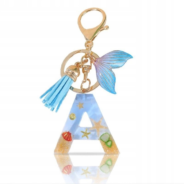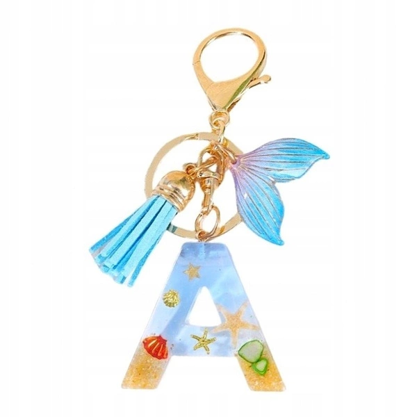 • Brelok z Literką idealny dodatek do kluczy lub ozdoba do torebki. Długość całkowita: 11,5cm. Długość literki: 3,8cm. Szerokość literki: 4,4cm. Wymiary ogona syreny: 3x2,5 cm. Długość przywieszki z frędzelkami: 3,5cm.