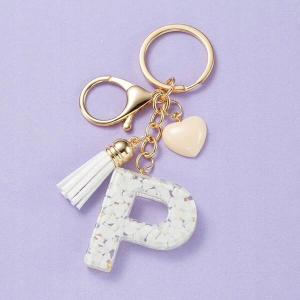 ECARLA brelok do kluczy LITERKA P biały motylek serca BRL329P