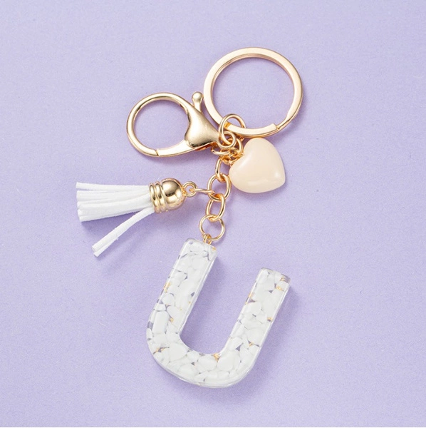 ECARLA brelok do kluczy LITERKA U biała z serca BRL329U