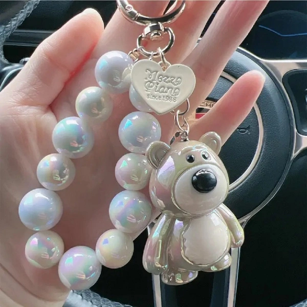 ECARLA brelok do kluczy Miś z koralikami Kremowy BRL366K