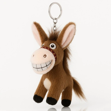 - Brelok do kluczy duży, pluszowy osiołek. Idealny jako ozdoba do kluczy lub torebki. Szerokość: 13cm. Wysokość: 12cm. Długość: 6cm. Długość całkowita: 17cm.