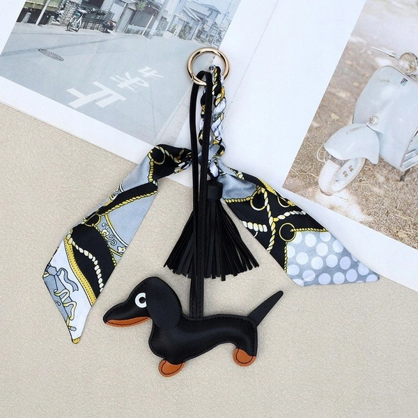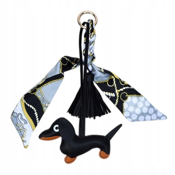 ECARLA brelok do kluczy skórzany JAMNIK z frędzlami Czarny BRL374CZ