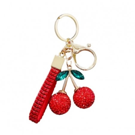 • Brelok z WISIENKAMI wysadzany czerwonymi cyrkonami idealny dodatek do kluczy lub ozdoba do torebki. Długość całkowita: 14cm. Wymiary wisienek: 4,5 x4 x2cm. Wymiary smyczy: 6 x0,7cm. Waga: 31g netto.