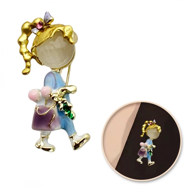 ECARLA broszka emaliowana Dziewczynka z Torebką BZ201