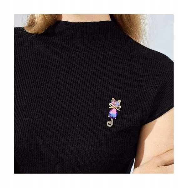 • Broszka świetnie pasuje do eleganckich, jak i do codziennych stylizacji. Elegancki dodatek na każdą okazję, do sukienek, swetrów i bluzek. Wykonana ze stopu metali nieszlachetnych bez niklu i chromu. Wymiary: 4,7x1,9cm.