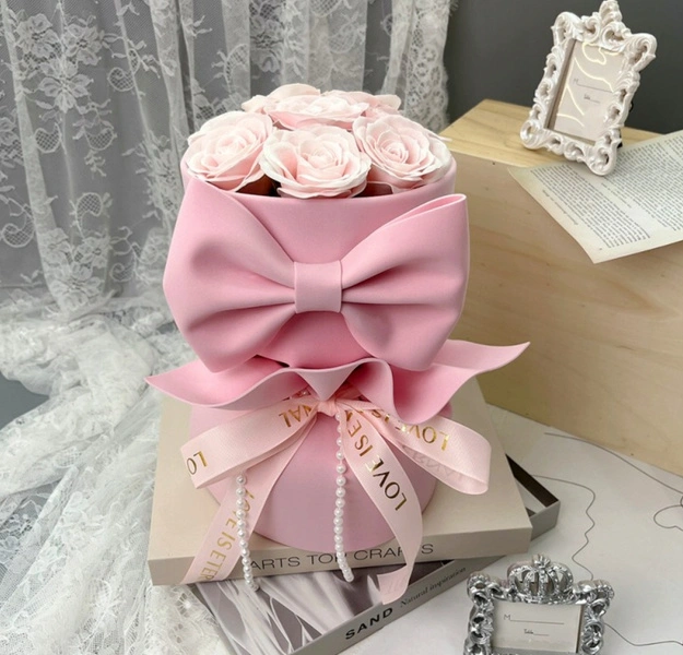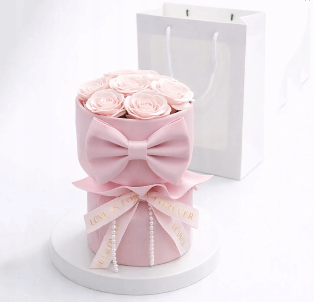 ECARLA bukiet mydlanych kwiatów pastelowe RÓŻE z kokardą BUK24R