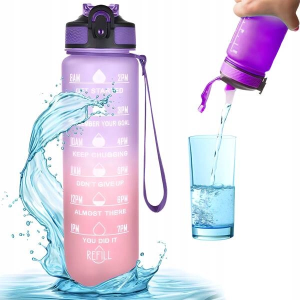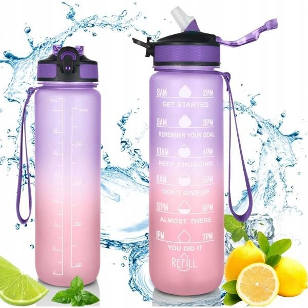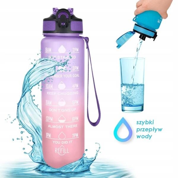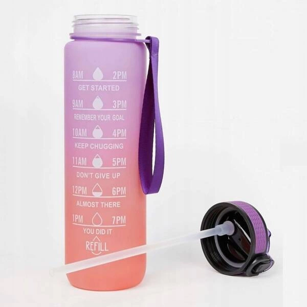 ECARLA butelka na wodę z miarką i słomką 1l Ombre Fiolet z Koralem BD20