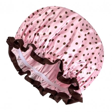 ECARLA czepek ochronny na włosy, do spania KROPKI Różowy KCZ01