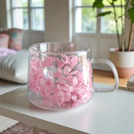 ECARLA filiżanka termiczna z podwójnym dnem i hortensją w środku Róż SZK74 180ml