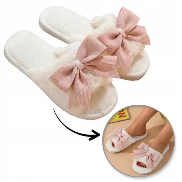 ECARLA kapcie ocieplane, antypoślizgowe z Kokardą, rozmiar 38 PAN06R38